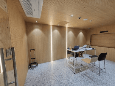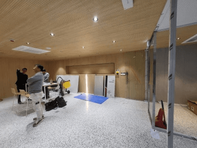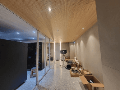 흡음소재(acoustic panel)를 천장과 벽에 동일 적용