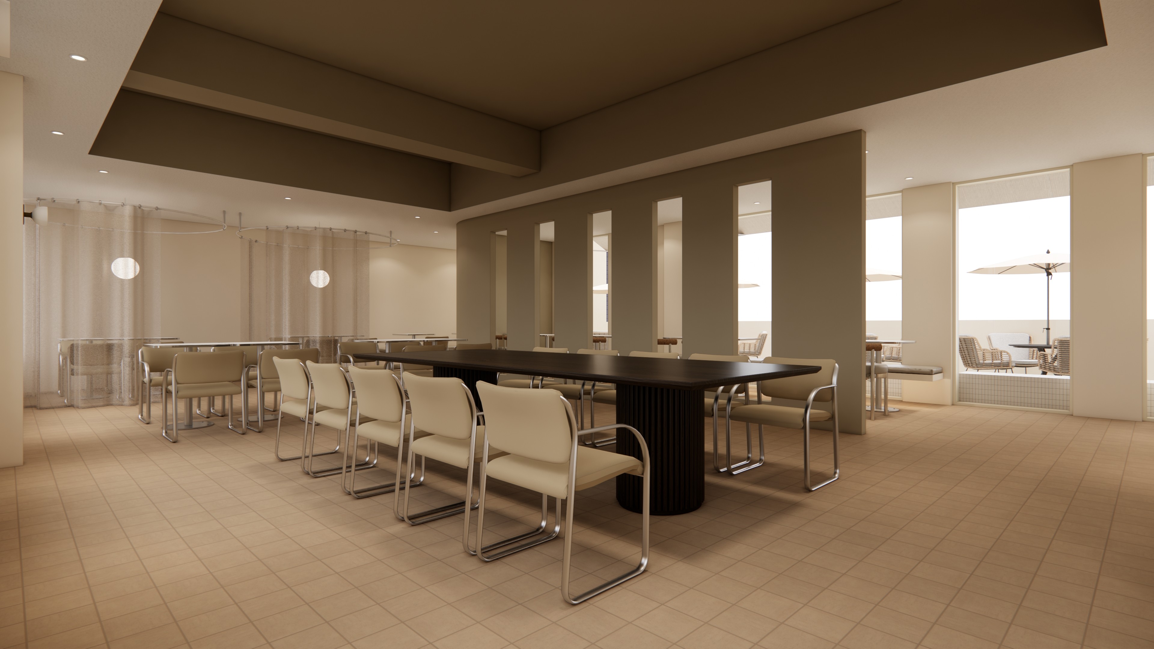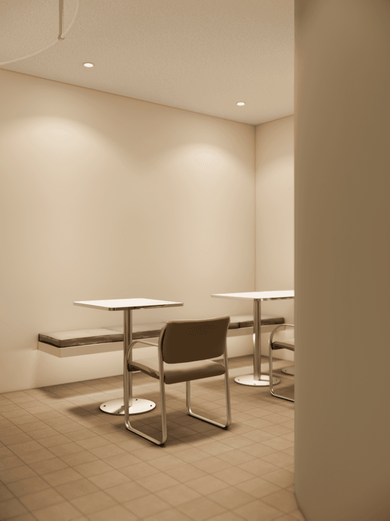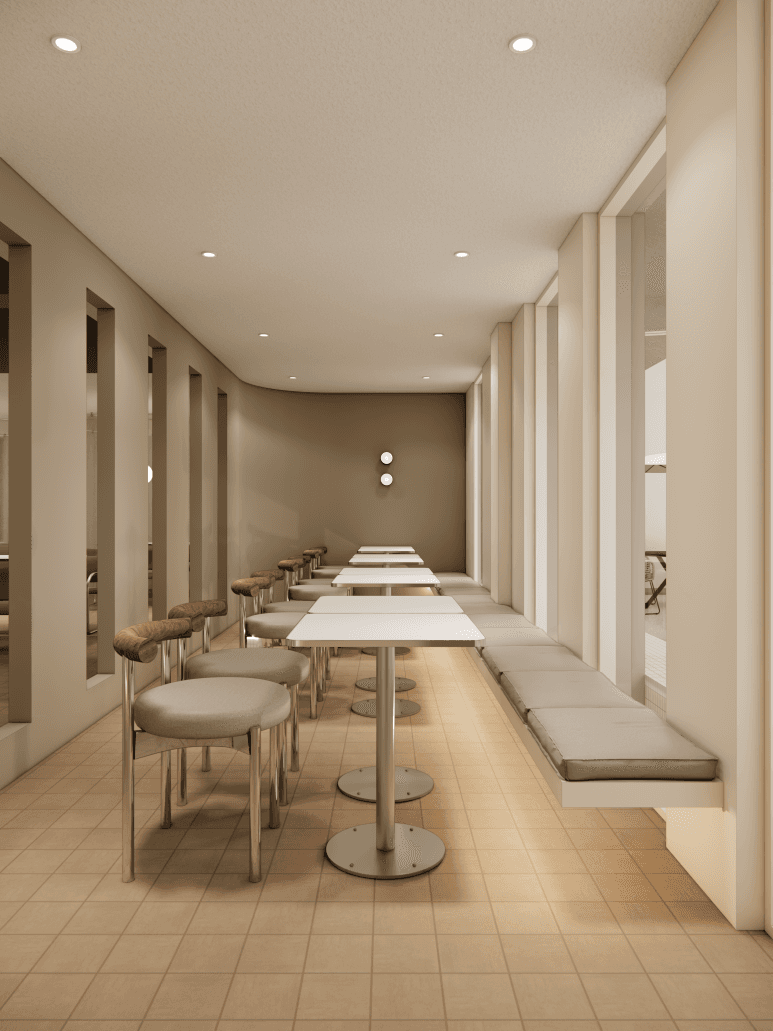 따뜻한 베이지 톤과 부드러운 조명이어우러진 모던한 카페 공간으로 연출하였습니다.창가를 따라 배열되어 있는 좌석 공간은자연광을 최대한 활용할 수 있도록 설계하였습니다.